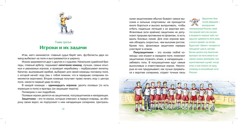 Почему футбол так популярен? Когда и где зародилась эта игра? Сколько человек играет в команде? Чем занимается тренер? Для чего в футболе нужны судьи? Каковы правила этой игры? Болельщики радуются и кричат: "Гол!" На табло сменяют друг друга цифры. На зелёном газоне бегают люди в спортивной форме самого разного цвета. Судья подаёт сигналы свистком и показывает различные жесты. Что всё это значит? Книга поможет маленьким читателям разобраться в правилах и традициях великой игры, раскроет все её тайны и загадки, расскажет о свершениях великих игроков и о том, как самому стать знаменитым футболистом.