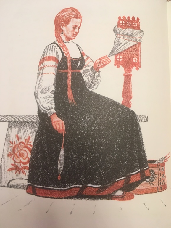 Помню ее и с куделей. Долгий монотонный труд