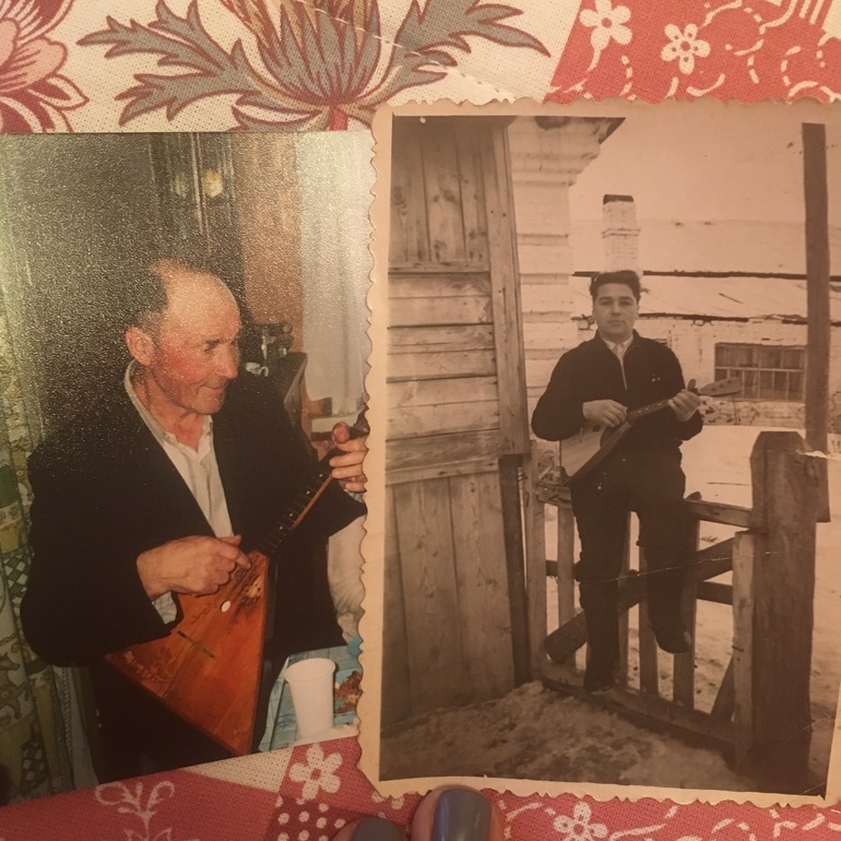 Гармонистов я у нас в семье не припомню. А вот дедушка по папиной линии- Иван- отлично играл на балалайке. Самоучка, конечно. Подруга его- балалаечка- всю жизнь рядом. И в молодости, и в старости. Сейчас храним её, как память.