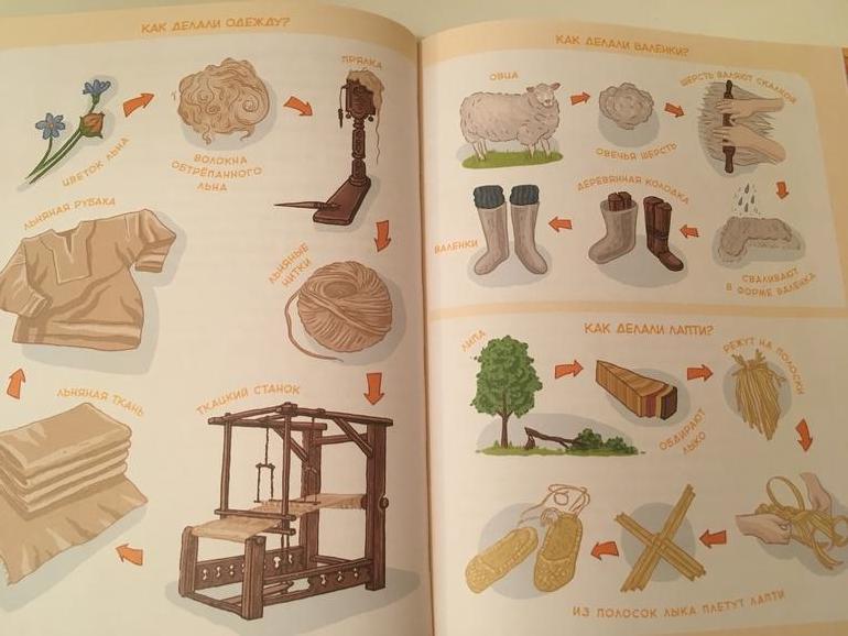 Кстати, когда читали о том, как вырастить рубашку, вспомнили о Чевостике. В книге Как жили на Руси есть очень наглядный разворот на эту тему.