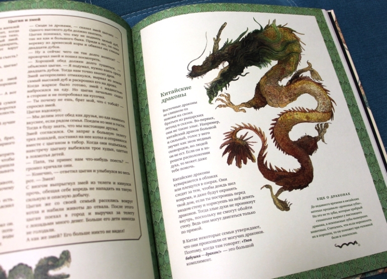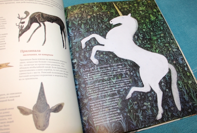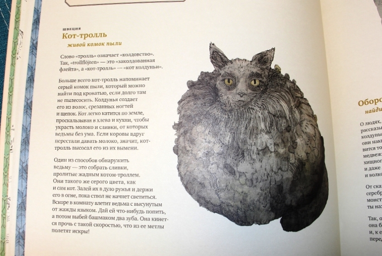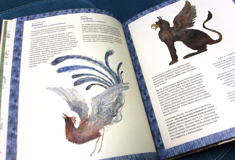 В книге рассказали, кажется, про всех фантастических тварей в мире. Она толстая, увесистая. Начинается глава в общем о поверьях, истории страны. Дальше есть описание каждой бестии. Кроме этого в книге есть сказки, легенды, поверья, какие-то разъяснения. Есть даже таблица всех подвигов Геракла. Его к бестиям не приравняли, просто он их много победил. В общем, при огромном формате книги и ее толщине, могу с уверенностью сказать, что в руках я держу полную энциклопедию фантастических тварей.