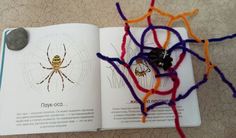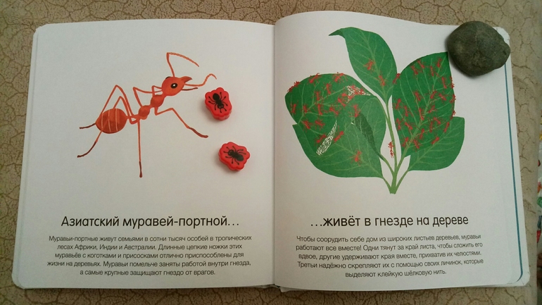 Вот с муравейником получилось не сразу, книгу на улицу с собой брали, формат то позволяет) хотели из веточек сложить, но не сложилось)