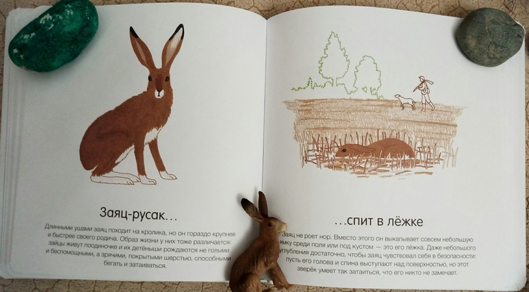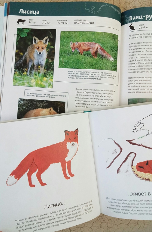 Рисунки симпатичные, реалистичные, очень узнаваемы, текст не энциклопедический, просто несколько интересных, забавных индивидуальных для каждого представленного животного фактов