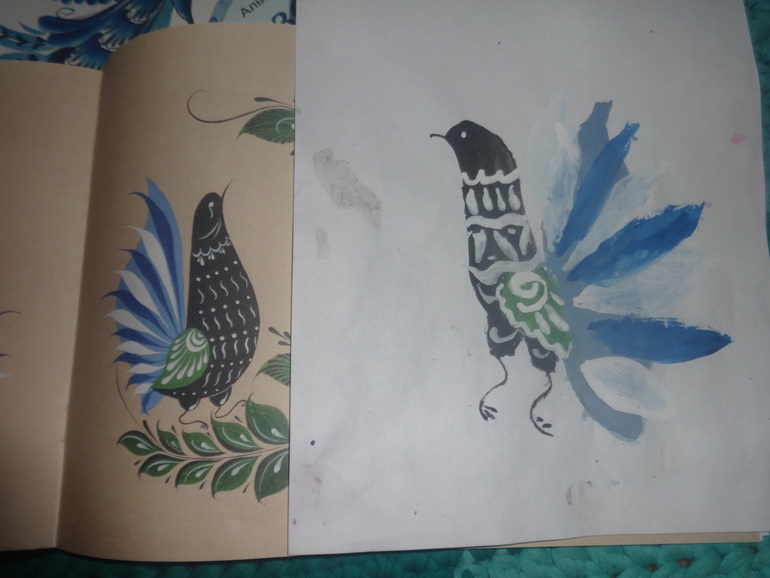 Это сегодняшняя работа из того же альбома с городецкой росписью.