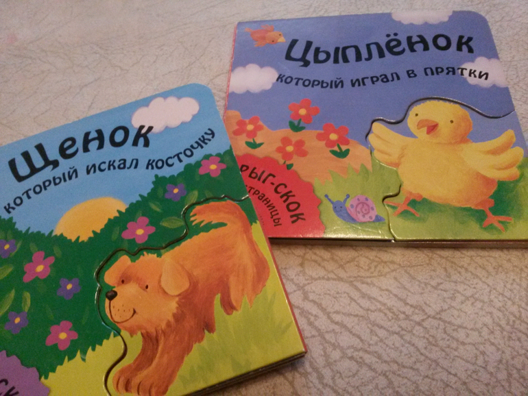 Книги-малютки из Илюхиной библиотеки. Тоже от Мозаики-Синтез. Про щенка, который искал косточку, и цыпленка, играющего в прятки.