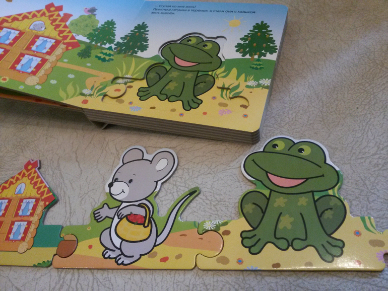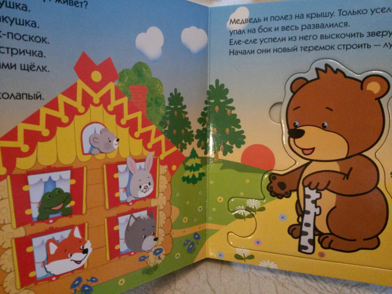 Первая русская народная сказка в Настином чтении - Теремок. Выбрала я необычный Теремок для Насти. С пазлами. Нам очень книга полюбилась) И Илюха оценил - Насте рассказывает Теремок с помощью пазлов)