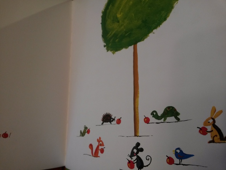 И напоследок книга, прочитанная совершенно спонтанно - . Книгу принес Илюха со словами: "Прочитай ее Насте") Прочитали все вместе, Илюха повспоминал, а Настю очаровала мышка и ее секрет. А еще нравятся Настюшке яблоки в этой книжке)