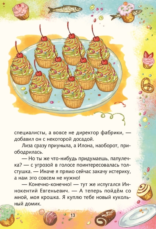 Книга яркая, иллюстраций много, по ходу книги вставлены досье главных действующих лиц, газетные статьи, а в конце есть рецепт кекса. Дочь собирается испечь его в выходные.