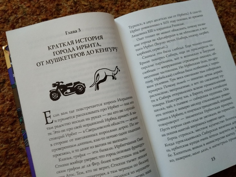 И книгу эту замечательную продавала бы во всех торговых точках города, особенно на вокзалах, чтоб все приезжающие и проезжающие могли ее купить. Не говоря уже о жителях города - книга должна, просто обязана быть в каждой семье, в каждой квартире! Ее даже стоило бы включить в программу ирбитских школ. А может, и не стоило - чтоб не убить светлый дух произведения занудными вопросами о трактовке того или иного образа и объяснениями "что хотел сказать автор". Что он хотел - он все сказал! Он рассказал Историю Города, как возник, чем жил, чем славился, какие люди здесь жили и бывали, какие обычаи существовали и канули в лету, а какие сохранились до сих пор.