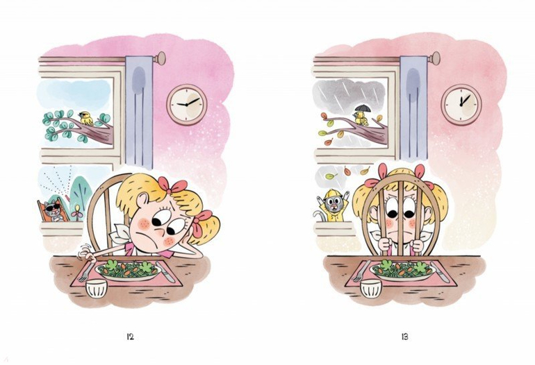 Как привлечь интерес малыша к книгам и научить читать? Покажите ему книжку без слов. Да-да, чтение картинок - тоже чтение! Предложите ребёнку придумать имя персонажу, описать его характер и сочинить историю. Страница за страницей, картинка за картинкой - и вот уже малыш сам прочитал всю книгу! Это история одной маленькой девочки, которая никогда и ни при каких обстоятельствах не будет есть овощи. Нет, нет и нет! Никогда! Никогда?