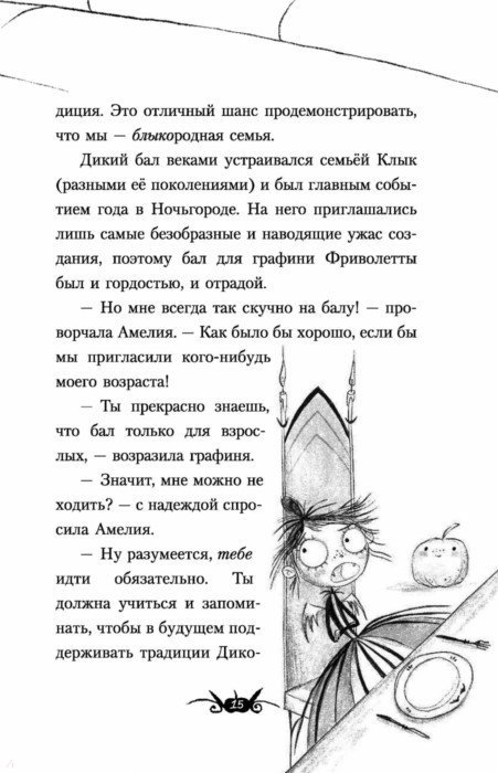 Она любит Тыквика (свою преданную ручную тыкву) и сэндвичи с прикуси-языком. И не любит избалованных выскочек и Дикий бал, который каждый год устраивают в замке её родители. А ещё Амелия - вампир!