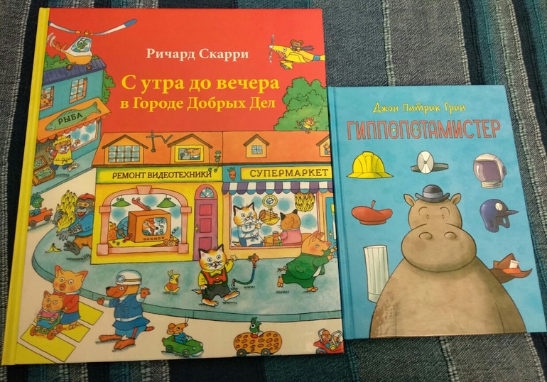 Удивительно, Скарри про машинки одна из тех книг, которая нас почти оставила равнодушными, а вот Город добрых дел зацепил сразу! Сам просил, мам, давай эту, про зверушек) К ней в пару взяла и новинку Гиппопотамистера,показывала тут, пусть изучает профессии)
