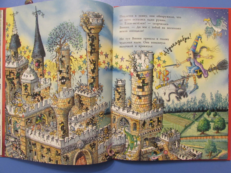 Иллюстрации очень необычные. Они невероятно сложные и полны разнообразных смешных деталей. Их можно долго рассматривать.