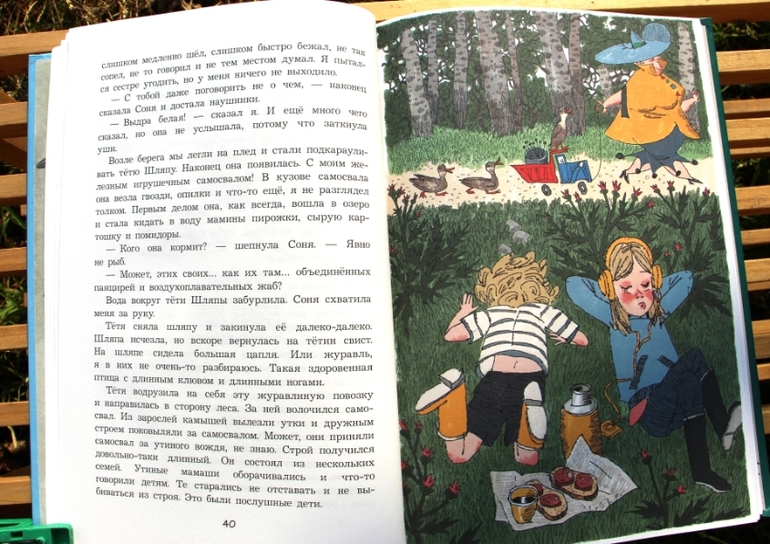 Сюжет накручен-наверчен немыслимый. Тетя Шляпа бомбическая натура с всепоглощающим обаянием (или чем она так завораживает) и сильно раздражающая папу (ну где ему понять агента Бырмырнадзора, Плавпрыгпродукта, почетного члена Рыбографического общества, начальника по охране воздухоплавательных рыб и президента Организации Объединенных Панцирей, и еще председателя Сообщества ученых панд)