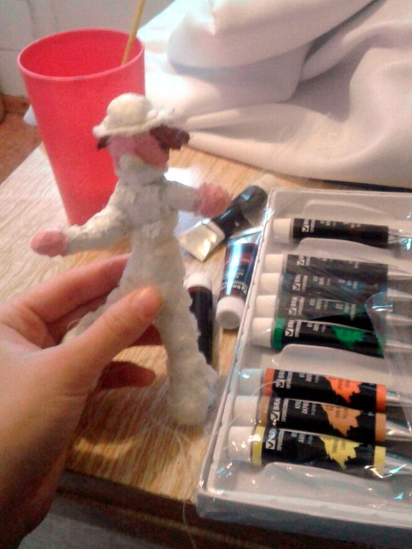 Клоун. Делается, как папье машье. Только вместо бумаги - вата.
