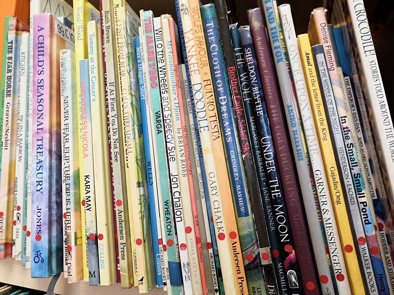 Я попросила библиотекаря подобрать мне книги для начинающего читателя. С этих полочек он смог выудить только Хоббита в комиксах и Роальда Даля.