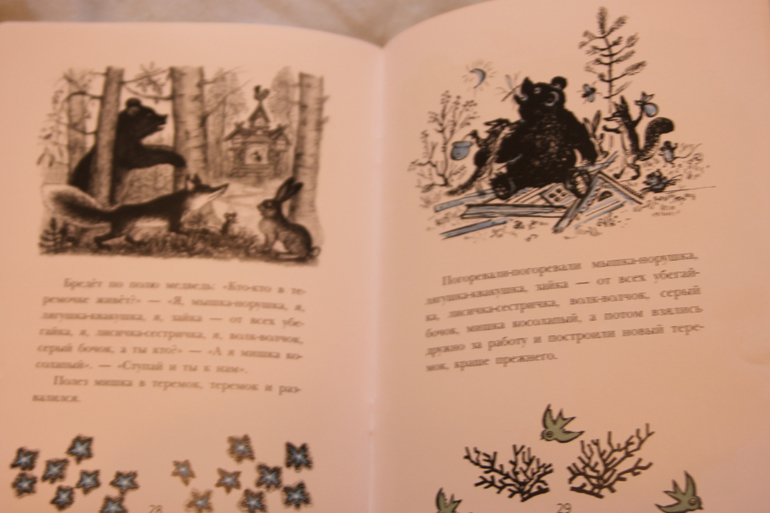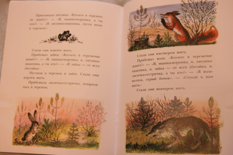 С этой книгой, точнее с иллюстрациями, мы с дочкой поиграли в игру "Угадай, какая сказка". Думаю вы тоже легко отгадаете, хотя в тексте и нет подсказок)))