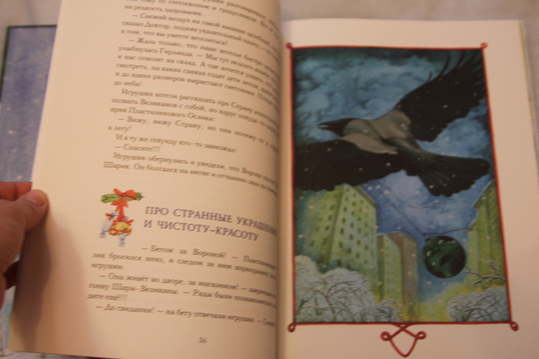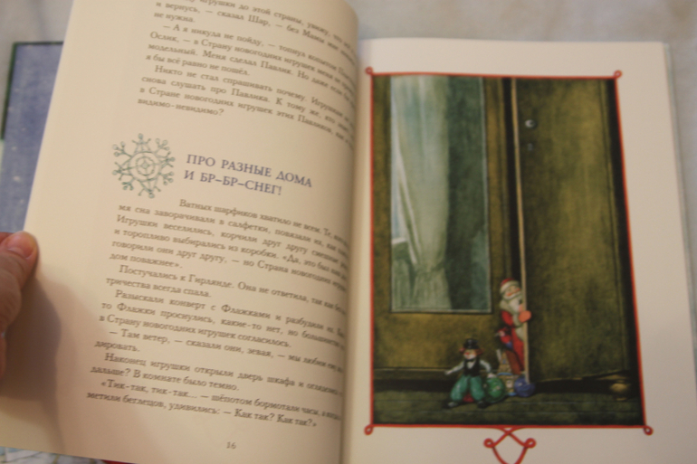 И первое что я купила была книга Е. Ракитиной "Страна новогодних игрушек". Очень хороший шрифт, иллюстрации, качество страниц. Думаю дочь будет довольна, найдя такой сюрприз под елочкой. Также обложка с блестками и небольшим рельефом добавляет нарядности и праздничности.