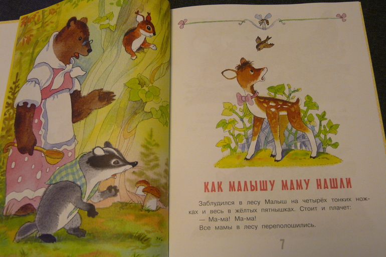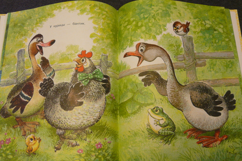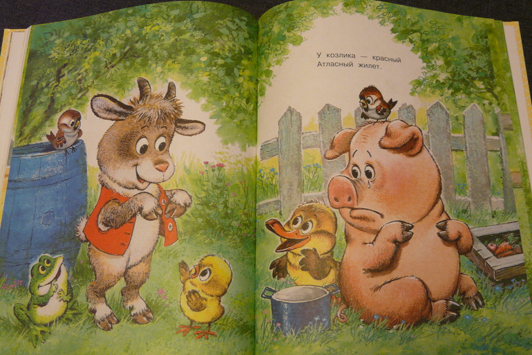 кроме сказок ,в этот сборник вошли несколько стихотворений .Особенно мне нравится про "Хрюшку".Тут картинки на весь разворот,отлично подойдет для первого знакомства с животными:)