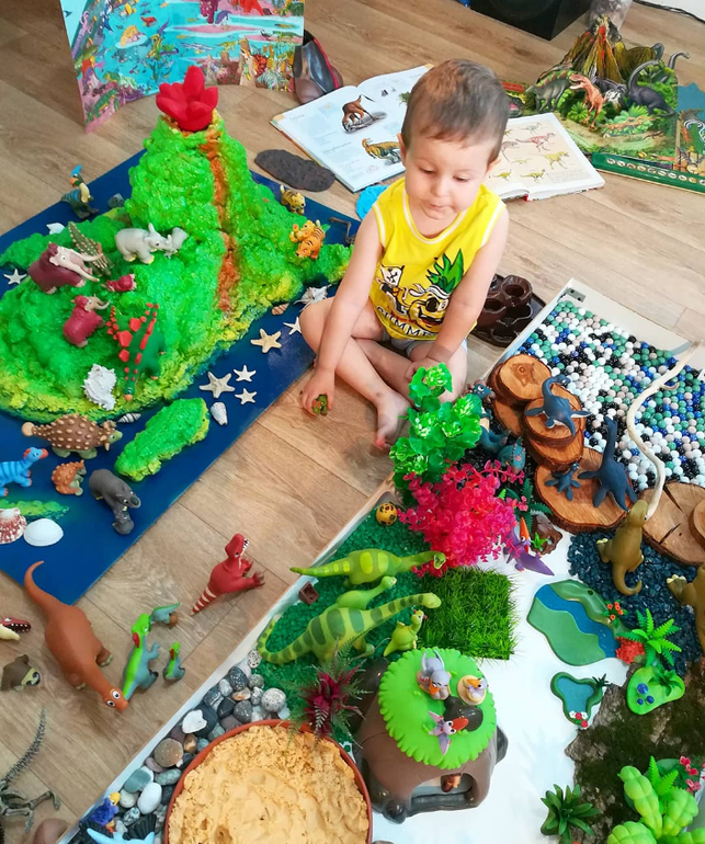 Да, динозавры из серии Деагостини. Сейчас муж с сыном собирают журнал с голубой машиной, муж шутит, что как автокредит прямо...