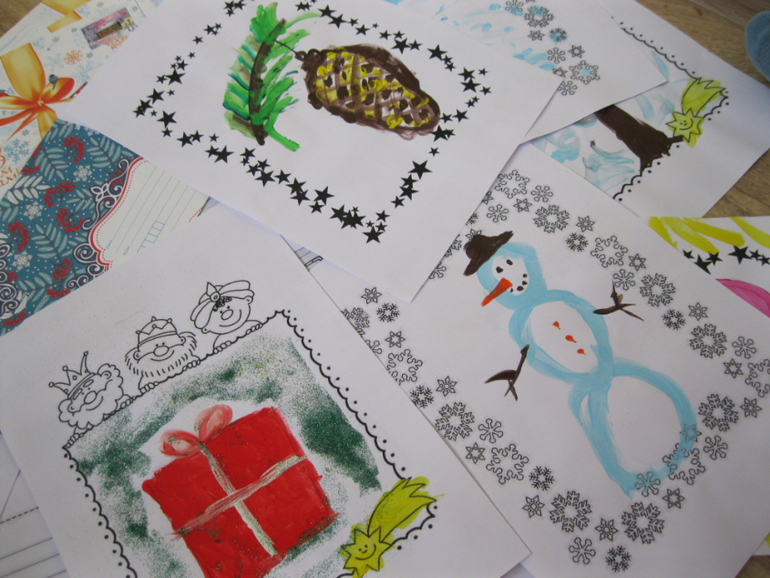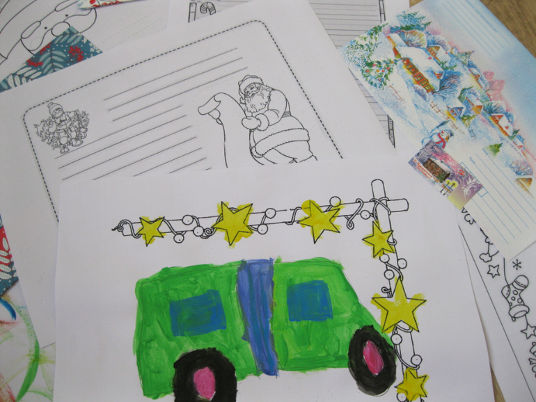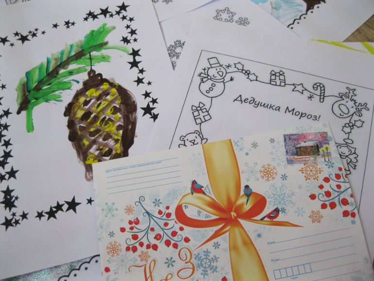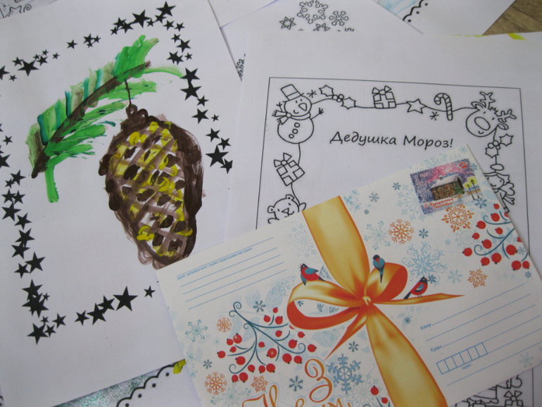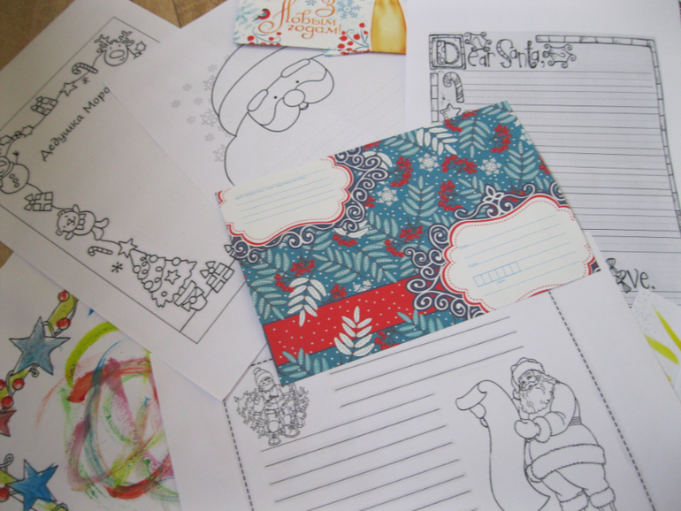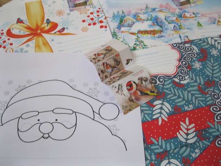 Я нашла на просторах Интернета готовые бланки писем, праздничные рамки для рисунков и распечатала их, накупила новогодних конвертов и марок, и мы с Костей принялись за дело.