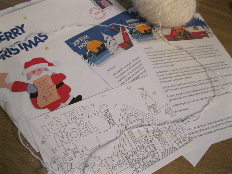 В письме два идентичных листка с текстом, один на английском, второй на французском, открытка для раскрашивания. Конверт красивый, с нарисованной маркой. Подписан, кстати, был на русском, хотя я вариант кириллицей даже не писала.