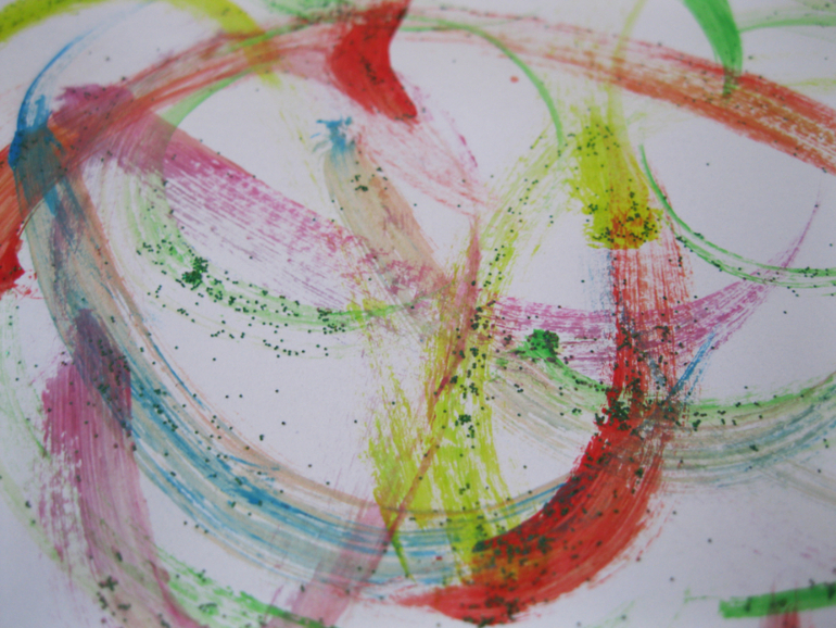 Костя расчехлил краски (удрызгал мне всю кухню) и стал создавать рисунки шедеврального характера))