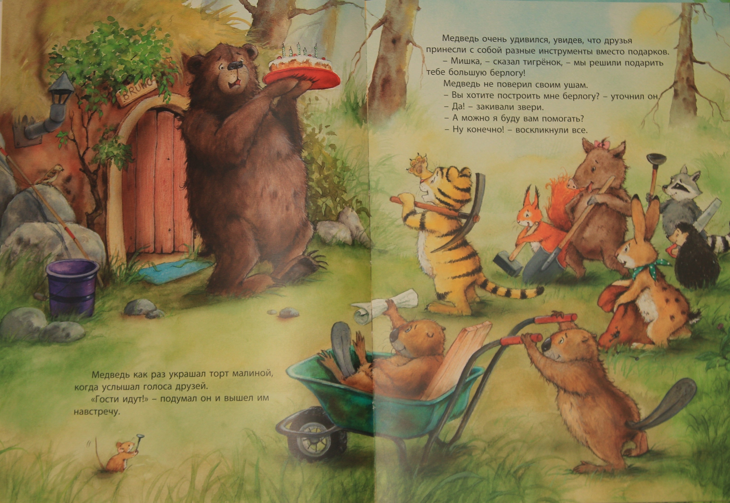 Медведь счастлив, как никогда, ведь он даже и не мечтал о новой просторной берлоге. И все благодаря верным друзьям. Медведь счастлив, как никогда, ведь он даже и не мечтал о новой просторной берлоге. И все благодаря верным друзьям, которые пришли на праздник с инструментами для увеличения жилплощади.