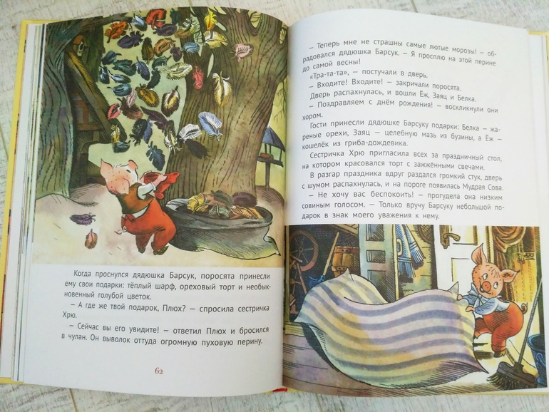 Поросенок Плюх никак не мог придумать, что же подарить на день рождения дядюшке Барсуку.. Но птицы подали замечательную идею!! И Плюх сделал перину из перьев :