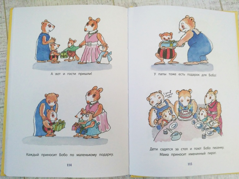 Бобо любимец Дашки, сколько раз мы читали эту книгу!! Здесь все очень наглядно, пришли гости, принесли подарки, а потом именинник задувает свечку.