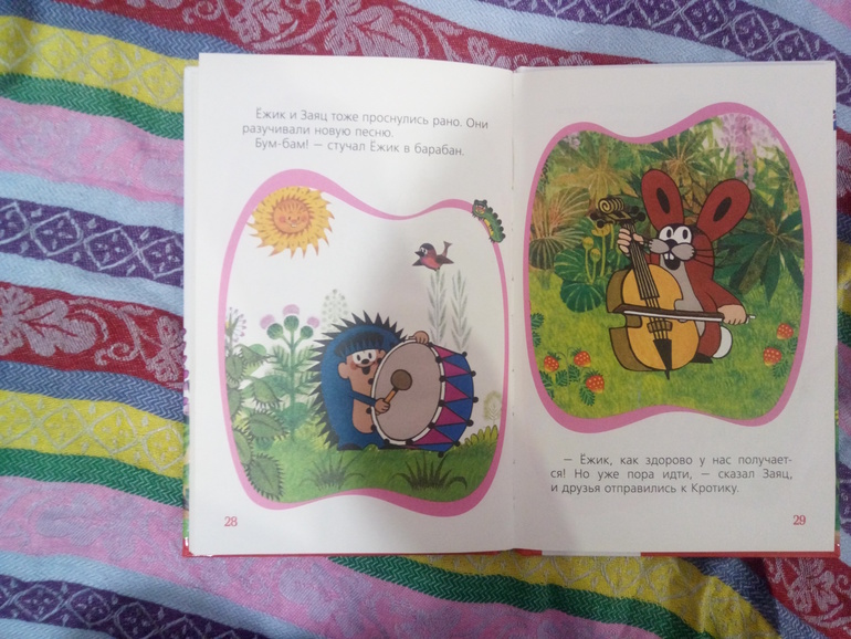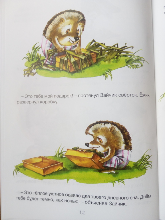 Зайчик подарил Ёжику тёплое одеяло, чтоб он мог заворачиваться в него во время дневного сна и спать в темноте