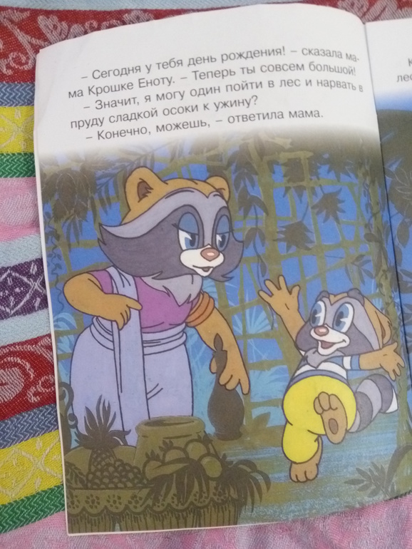 1. Крошка енот в свой день рождения решил, что он совсем взрослый и сам отправился к пруду