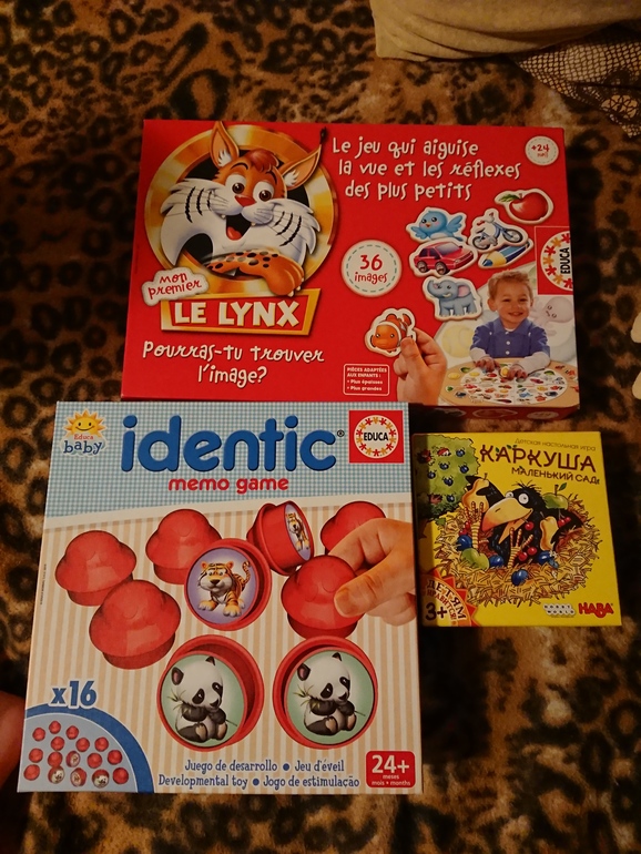 Очень хорошо идут лото и мемори Educa, "Каркуша" HABA.