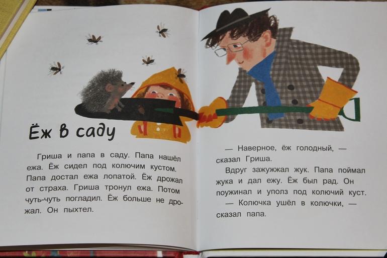 Мне уже стыдно при каждом удобном и неудобном случае приводить в пример книгу Я.Тайца "Кубик на кубик". Это замечательная книжка, как для малышей, так и для начинающих читать детей более старшего возраста. В ней короткие - короче уже просто совершенно некуда, рассказики. Но в каждом есть сюжет. И сюжет, интересный детям - из их жизни. Подобные же прелестные миниатюры для детей в 3-4 предложения я читала в книге Спиридона Вангели - Мальчик из голубого шалаша. Автор работал учителем в сельской школе и прекрасно знал что и как надо писать для детей. Именно - короткое, простое, понятное и интересное детям! Почему стыдно? Да потому что сколько можно повторяться? Говорить одно и то же? И даже эти книги сколько лет было днем с огнем не найти! И почему - было? Одну так и не найти до сих пор... Вот и читали азбучные странички Льва Толстого да "Так и не так" Чуковского, разбавляя ими страницы букварей.