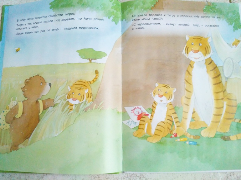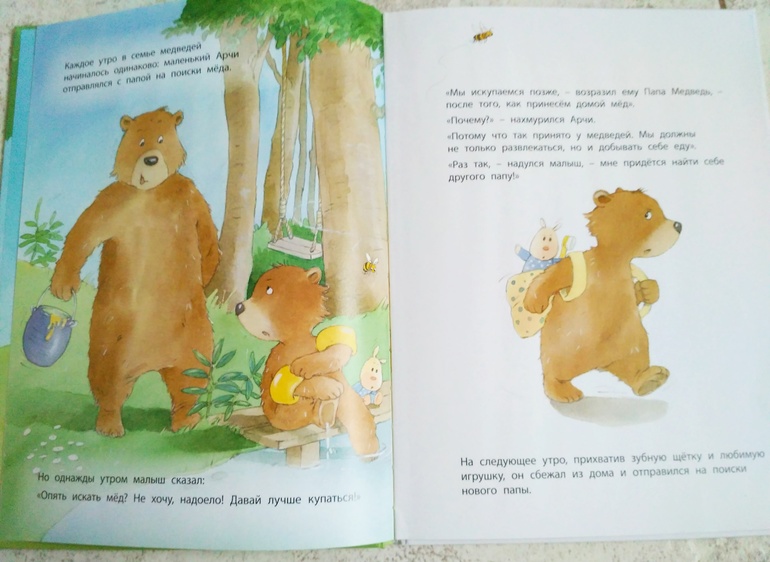 Эта книга тоже нашла отклик в душе у дочки, она переживает за медвежонка, за папу и в конце радуется что они наконец вместе!