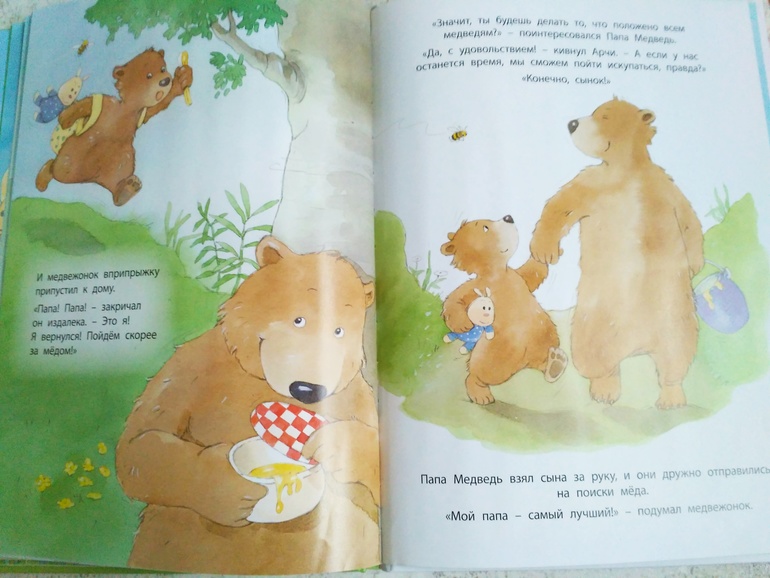 Второй хит этой недели Самый лучший папа , совершенно другая по энергетике книга, она нежная, душевная, она о папе, а вообще книг о папе не так уж и много. И очень хороший в ней посыл как для детей так и для взрослых. Это только кажется что у других лучше, вкуснее, легче, больше. Медвежонок на собственном опыте убедился что лучше то что есть у него, что именно его папа самый лучший, именно мед самая вкусная еда для медведей.