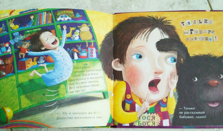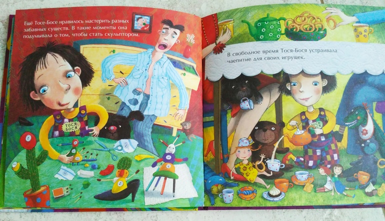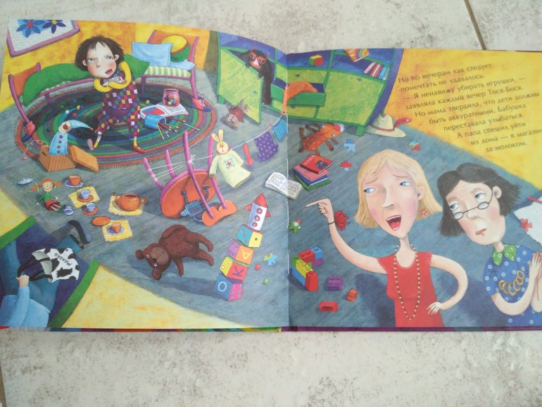 И хотя Тося Бося попала в жилище Гнома Чистюли, он сказал, что игрушки девочка получит, выполнив три условия. Так что в книге есть и задания, которые дети с удовольствием выполняют.