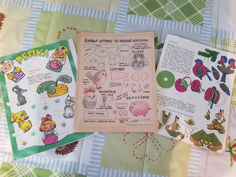 До сих пор они лежат у меня около кровати, рассматриваю. Прям до мурашек...Такие, как ниже в разворотах, номера у меня точно в детстве были, эти поделки я даже делала, хорошо помню)).