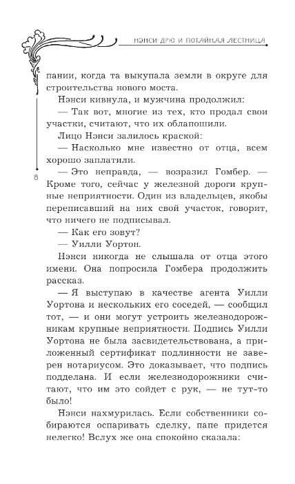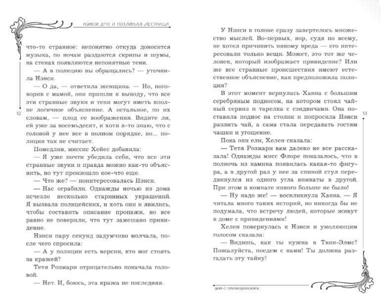 "Нэнси Дрю и потайная лестница" - это вторая книга о легендарной американской девушке-детективе Нэнси Дрю. Таинственный призрак беспокоит двух жительниц одного старого поместья в Клиффвуде. Женщины запуганы и даже готовы продать дом за бесценок, лишь бы избавиться от этой проблемы. Но дело обретает новый поворот, когда в доме появляется Нэнси. Девушке-детективу и ее подруге Хелен предстоит встретиться лицом к лицу с призраком, а заодно и помочь отцу в запутанном деле железнодорожной компании.