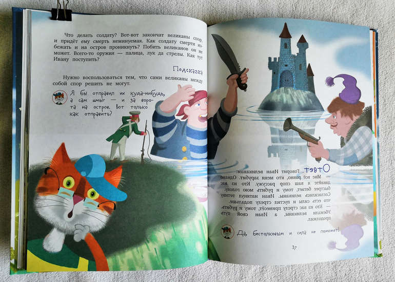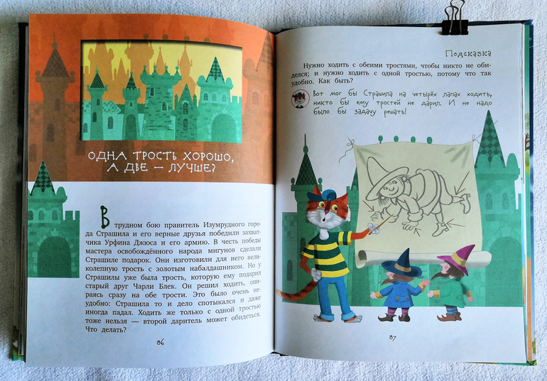 Большинство задач взяты из известных детских произведений. И даже, если ребенку известно эти сказки/мифы/мультфильмы и он помнит ответы, то это неплохо. Во-первых, он учится замечать, что в знакомых сказках тоже скрываются задачи. А во-вторых, может попробовать найти другие решения сказочной задачи.
