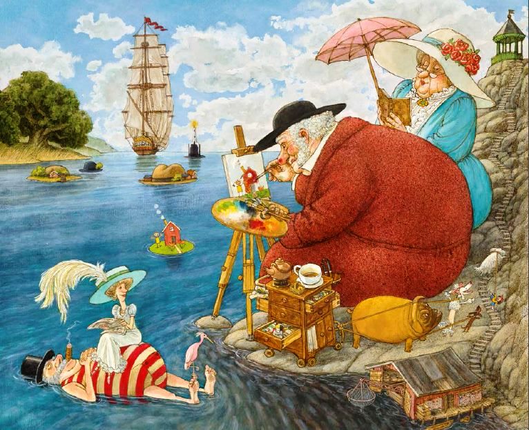 Обычная прогулка с собакой может обернуться приключением, полным приятных неожиданностей. Розовый мамонт грустит в клетке для канарейки, а буйвол играет на ударной установке. Гигантский чайник сам разливает чай, а шляпа притворяется островком в море. В фантастических мирах Свена Нурдквиста возможно все!