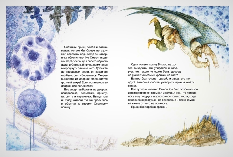 Почему на землю падает снег? Потому что где-то там, высоко над облаками, летит Снежный принц - добрый волшебник, который дарит снег людям. Трогательная, романтичная и немного философская Снежная история - это сказка вне времени и пространства: здесь и Восточное царство, и Горный край, и загадочный город, который нельзя найти на карте, но так легко вообразить. Книга, сотканная из снега и света, подходит для любого сезона и почти для любого возраста. История, которую так ждёт душа, дарит ощущение победы. В ней есть то, чего глазами не увидишь. Сказка убеждает нас, что взобраться на гору несложно, если есть упорство, вера в успех и поддержка любимого человека. Она помогает обрести уверенность в том, что каждый из нас имеет крылья, которые непросто увидеть, но всегда можно почувствовать, как велит любовь, живущая в наших сердцах.