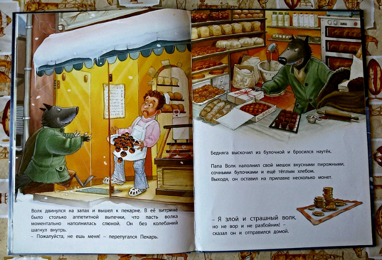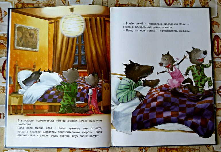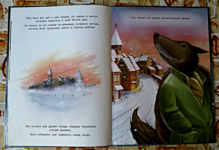 История эта безумно добрая и забавная. Небольшая рождественская сказка о великодушном волке, который темной зимней ночью отправился за чем-нибудь съестным для своей семьи.