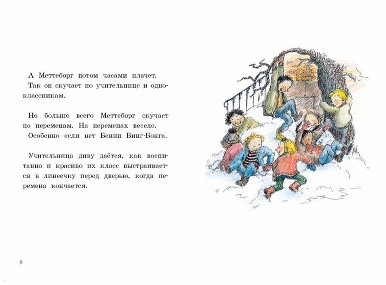 Самое важное происходит на переменах. Меттеборг вообще ради них и живёт! Но перемены - ещё и время опасностей: однажды, например, любитель подраться Бенни Бинг-Бонг набил Меттеборгу шишку, да ещё и вышел почти сухим из воды. А в другой раз стало плохо учительнице - так что пришлось вызывать скорую помощь. И неудивительно: быть учителем в таком классе - нелёгкое дело. Кажется, одну только Дюнне любят все: и одноклассники, и учителя. И на её дне рождения было веселее, чем на других: Меттеборг обожает вспоминать тот праздник!