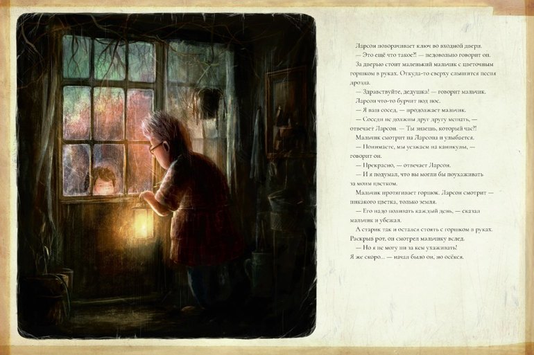 Однажды вечером, когда Ларсон, как обычно, обошёл все комнаты в доме и погасил свет, в дверь неожиданно позвонили! На пороге стоял мальчик с цветочным горшком. Неужели старику Ларсону под силу ухаживать за семечком, которое должно прорасти?