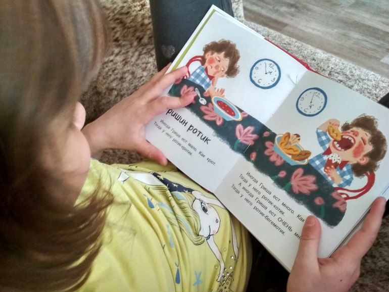 Но пока она целиком захвачена книжными мальчишками и ничего другого читать не желает. Гриша, к слову, впечатлил - Сказки на один укус ей уже вполне по зубам)