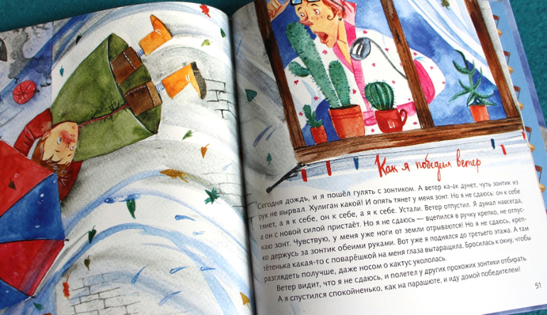 Книга будет замечательно «слушаться» маленькими и прекрасно впишется в первое чтение: рассказу маленькие, простые фразы, крупный шрифт, любимый детьми квадратный формат и море иллюстаций. Иллюстрации в приятных тонах, очень «живые», заметно, что нарисованы от руки и с душой.