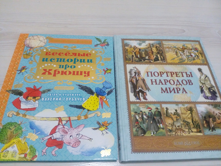 В.Горбачёв "Весёлые истории про Хрюшу". И Лазарев " Портреты народов мира". Подержав в руках, вспомнила, что в детстве про Хрюшу что-то читала. И вообще, нравится мне творчество В. Горбачёва. А как мне понравились портреты!!! Качество печати на высоте: много иллюстраций, мелованная бумага, большой формат. Но главное достоинство, на мой взгляд, интересный и доступный ребёнку язык автора. Конечно, не читала целиком, а мельком взглянула. Довольна ли я? Я в восторге!!! Уважаемые модераторы, Марина и Катерина, огромное спасибо! Не устояла я перед искушением "чёрной пятницей" в лабиринте))).