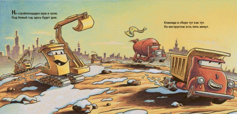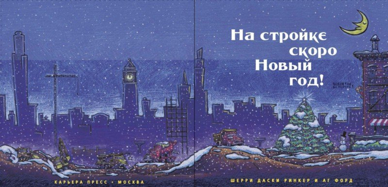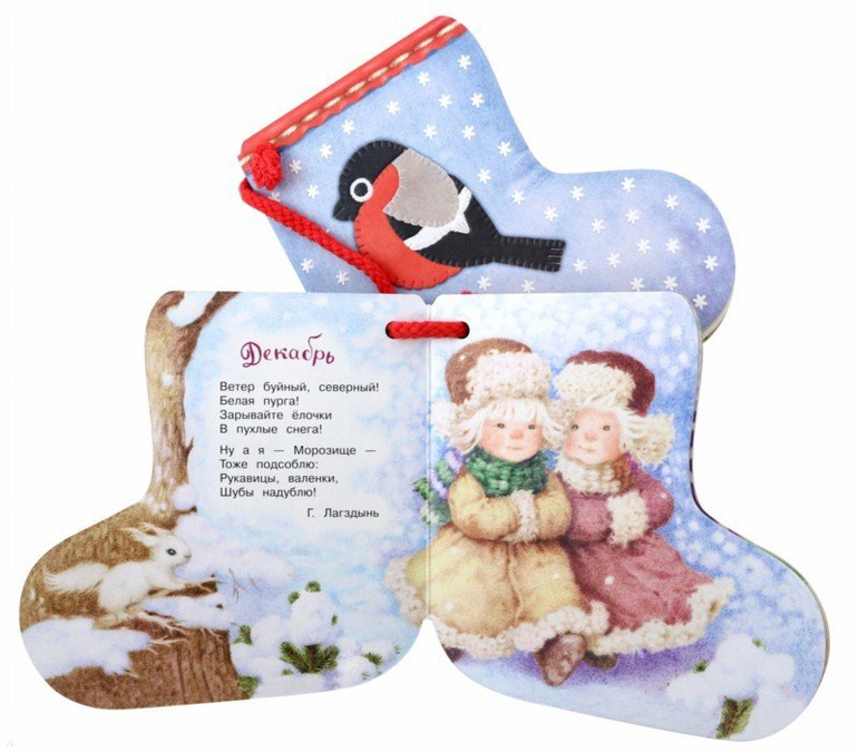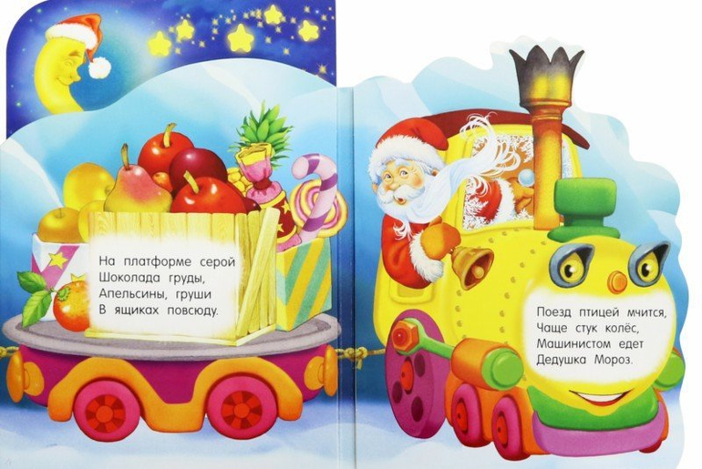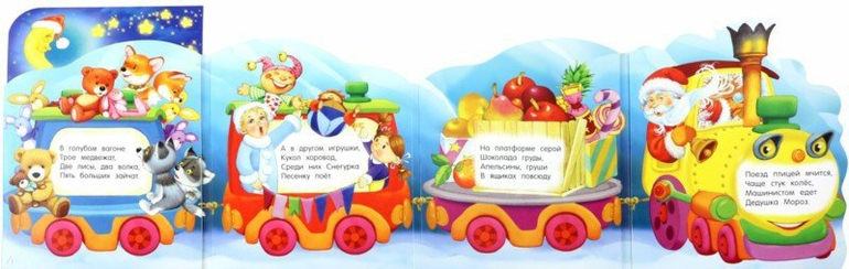 Красочно иллюстрированная книжка-раскладушка из плотного картона с оригинальной вырубкой с новогодним стихотворением Николая Дориана.