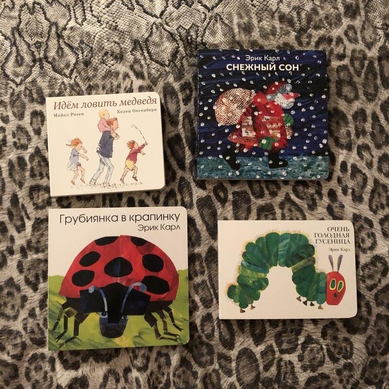 Хотела у Клевера книжку для первого чтения. Порекомендовали Машу и Мишу. Я, конечно, сторонница «шведских столов»😅, но вот взяла. 250р.8) Малышу докупила книжные хиты Эрика Карла и Розена. Очень долго все эти книги мариновались в моих корзинах. И вот ура! Розовый жираф очень порадовал ценами. «Гусеница» 450, остальное по 400. Грубиянка и Снежный сон - отказы в магазинах, на них есть царапинки и наклейка магазина. Но нам не принципиально - все равно пока грызть😂